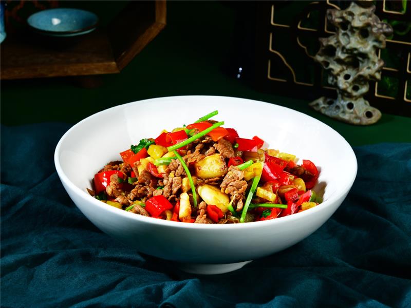 小炒大别山黑毛土猪肉